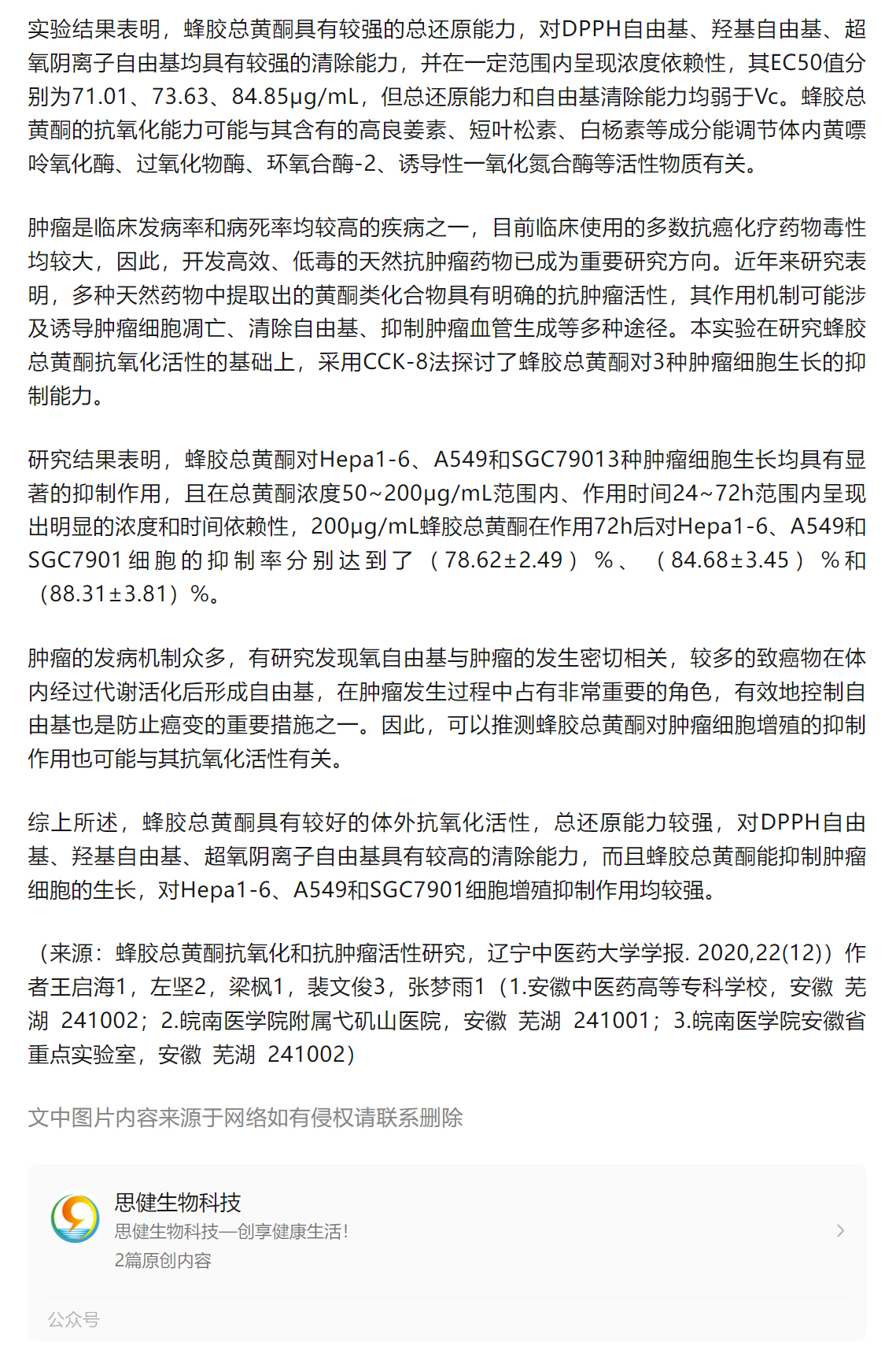 蜂膠總黃酮抗氧化和抗腫瘤活性研究!-遼寧中醫(yī)藥大學(xué)