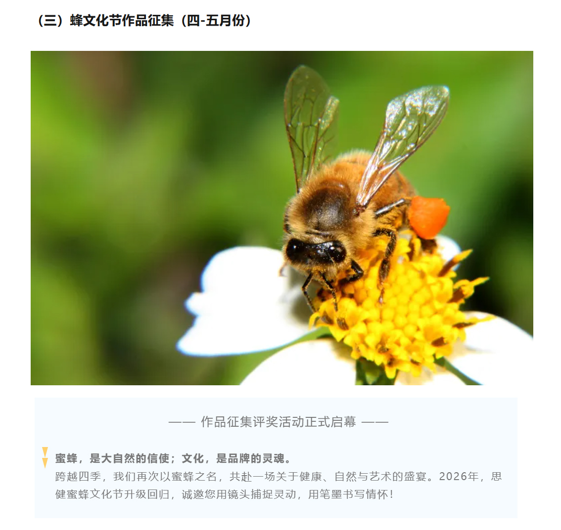 喜迎世界蜜蜂日暨2026思健蜜蜂文化節(jié)作品征集評(píng)獎(jiǎng)活動(dòng)開始啦!